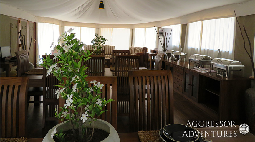Sleep well in air-conditioned dwellings and enjoy breakfast, picnic lunches, and elegant dinners, including beer and wine, as is customary with all Aggressor excursions.